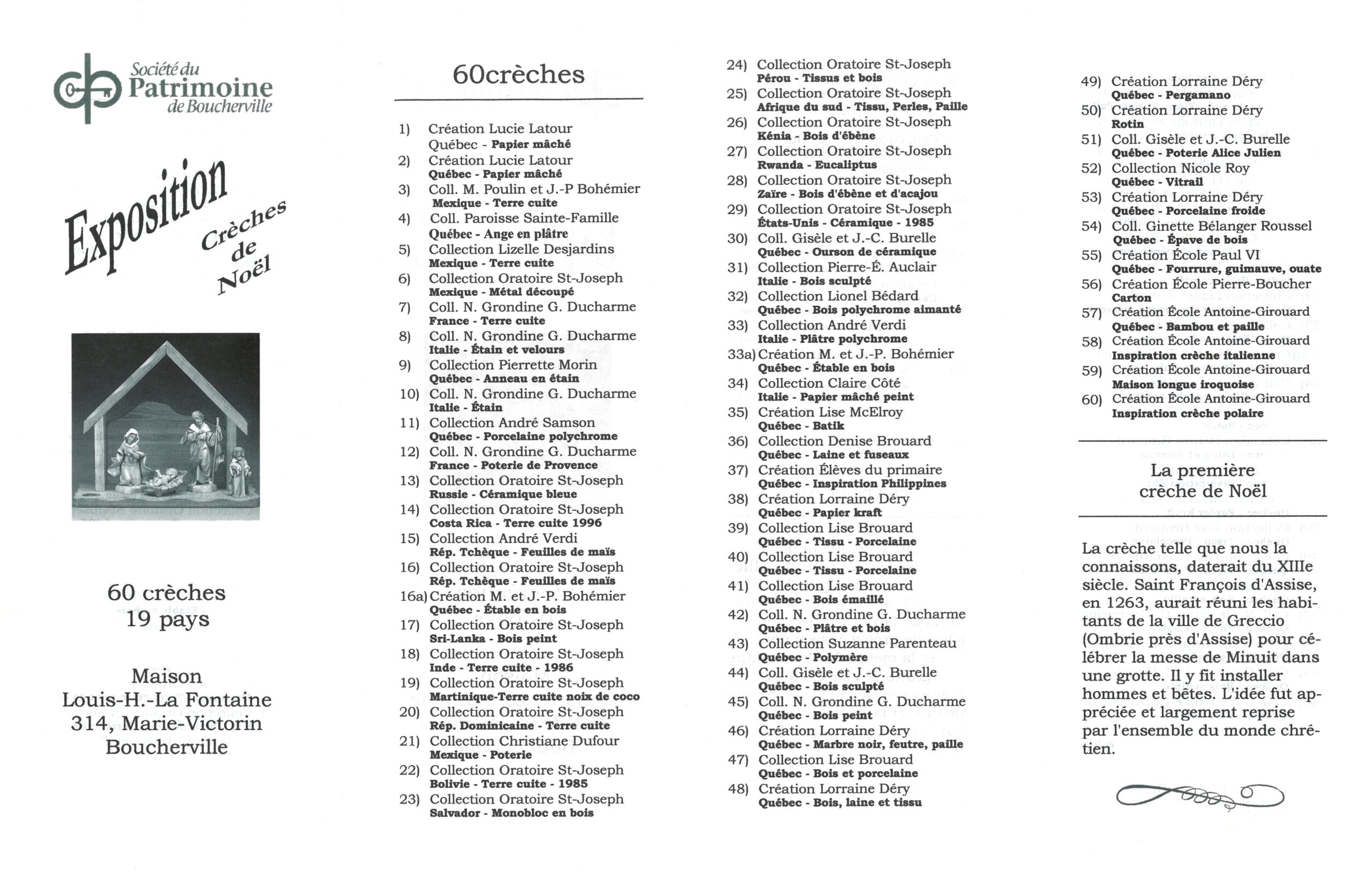 60 crèches en provenance de 19 pays (crèche en bois).